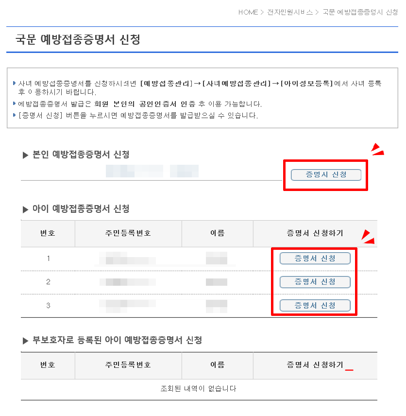 예방접종 도우미 홈페이지에서 증명서 발급하는 방법