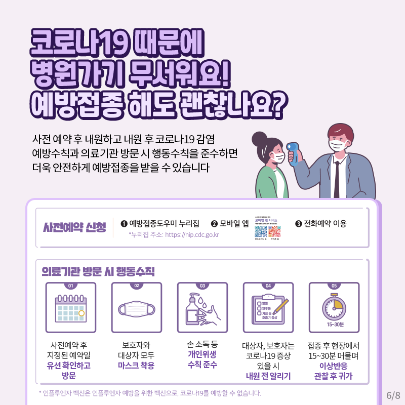 사전예약 후 내원하고 내원 후 코로나 19 감염 예방수칙과 행동수칙을 준수하면 안전하게 예방접종을 할 수 있다고 합니다.