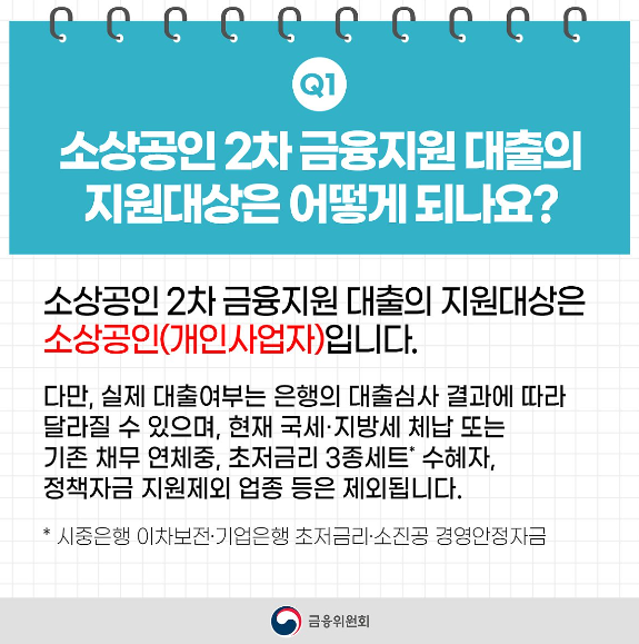 소상공인 2차 금융지원 특별지원 프로그램 대상