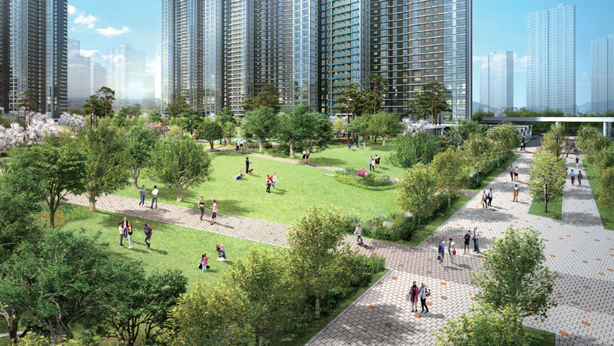 넓은 대지에 비해서 건폐율이 무척 낮은 편인데요. 이는 조경 면적과 공원과 같은 공간으로 비워둠으로써 더욱더 여유 있는 공간으로 거듭나며, 감성적이며, 힐링의 공간이 될 것입니다.
