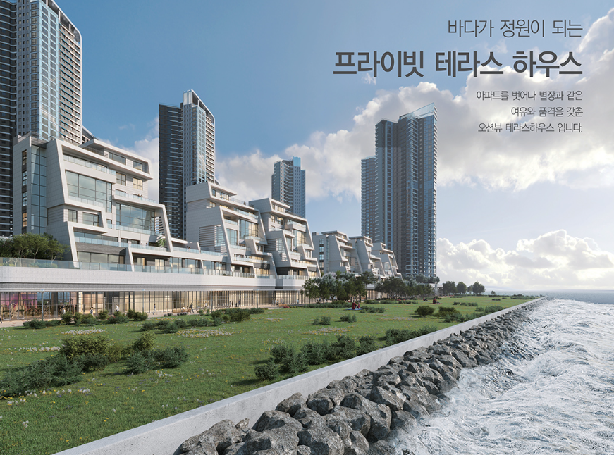 그리고 바다 앞쪽으로 배치하고 있는 테라스형 빌라는 주변 고층의 아파트와는 달리 별장과 같은 느낌으로 항상 휴양지에 와있는 듯한 느낌을 느낄 수 있는 주거공간이 될 것입니다.
