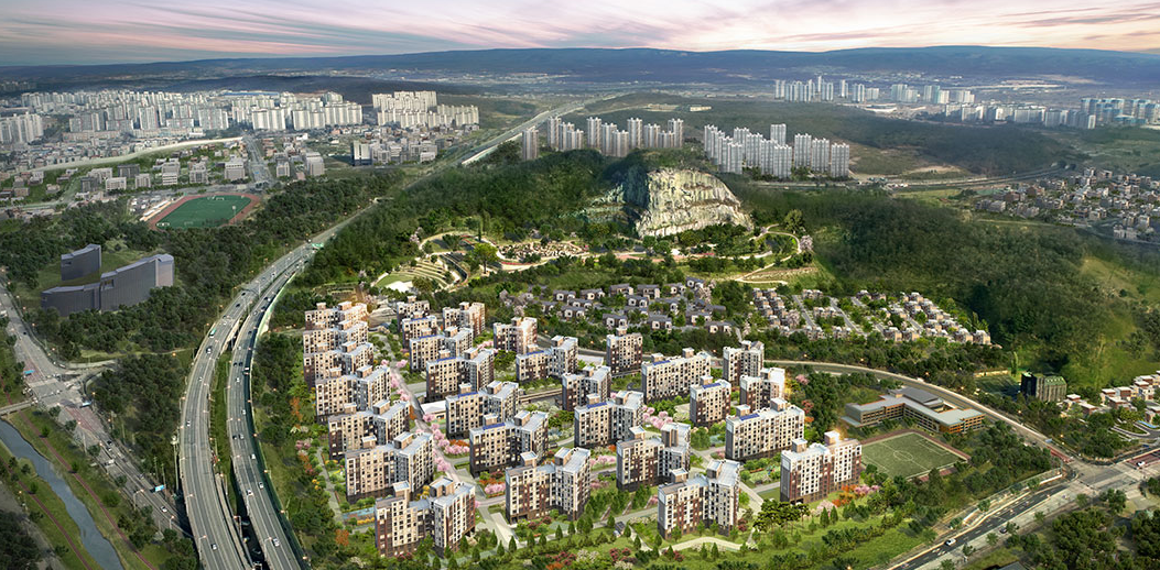 신도시인 만큼 넓은 대지에 위치하고 있고 세대수가 많기 때문에 세대안에 인프라 시설이 모두 포함되어있습니다. 그리고 용적율또한 낮아서 넓은 인동간격과 많은 조경시설로 인해서 쾌적한 아파트가 되지 않을까 싶습니다.