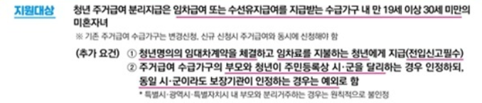 청년 주거 급여 분리 지급 대상