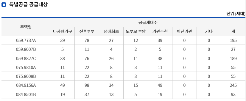 대단지 아파트여서 다양한 특별 공급 대상이 많이 있으므로 이런 좋은 조건을 고려하여서 청약을 하시면 도움이 될것같습니다.