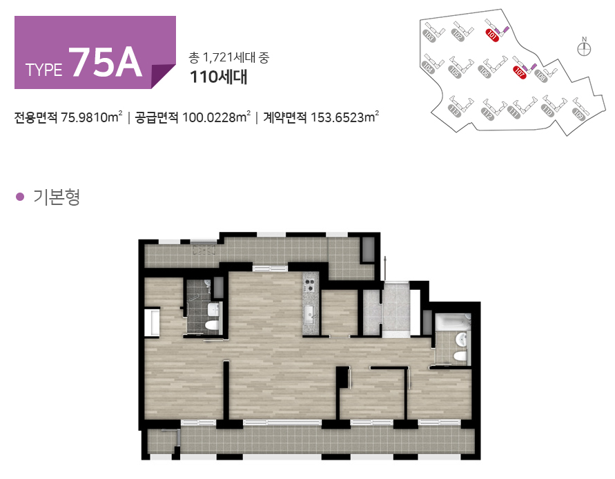 선호도가 높은 타입으로 대부분의 단지세대를 구성하였고, 공간의 활용도 또한 높여 계획하였습니다.