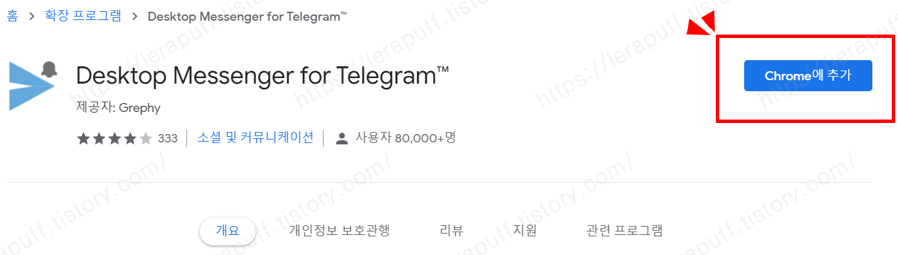 클릭을 해서 들어가보면 크롬에 추가하기 버튼이 있습니다.