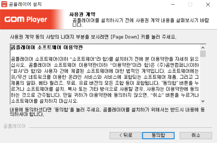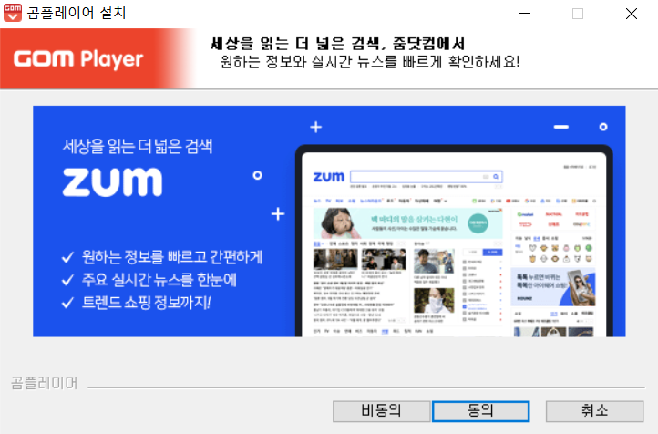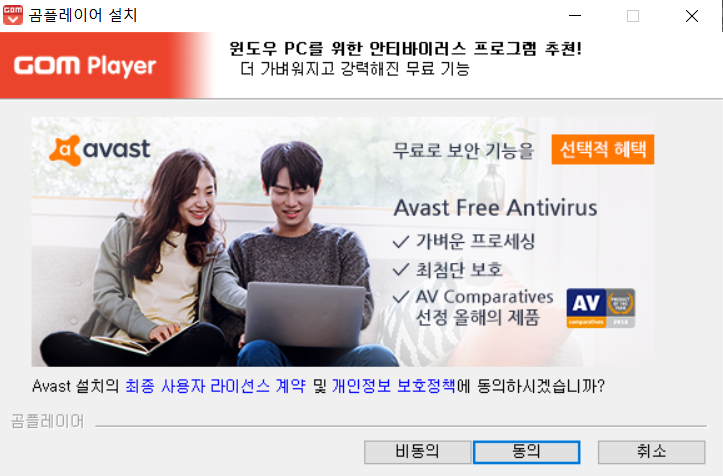 곰플레이어에서 제공하는 안티바이러스 프로그램도 필요 유무에 따라 동의/ 비동의를 선택하시어 다음으로 넘어가시면 되겠습니다.