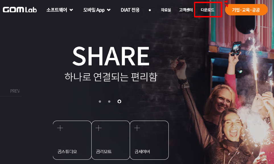 홈페이지 상단에 보면 메뉴 중에 다운로드 버튼이 보입니다. 다운로드 로드 버튼을 클릭해보겠습니다.