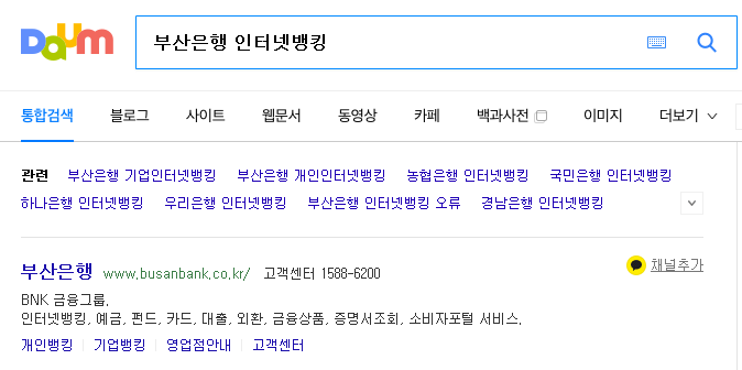 검색창에 부산은행 인터넷 뱅킹을 검색 해봅니다. 부산은행 홈페이지가 바로 뜨는데요.