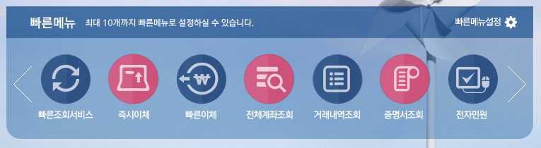빠른 메뉴 설정을 통하여 자주 이용하는 업무는 빠른 메뉴 설정에서 등록하여서 개인에 맞춰서 사용이 가능합니다.