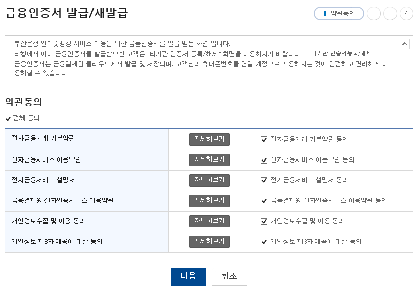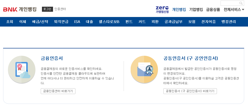부산은행 인터넷 뱅킹 금융인증서 발급받는 방법
