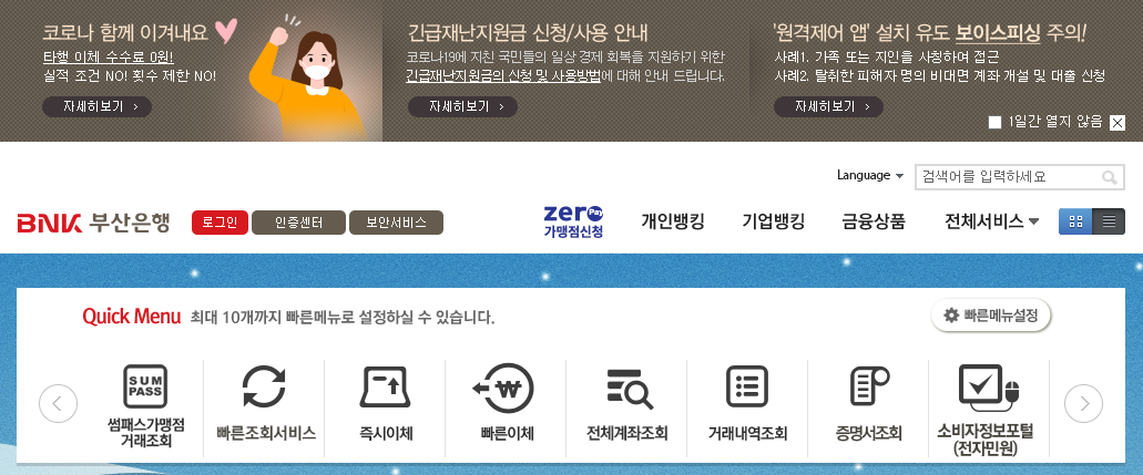부산은행 인터넷 뱅킹 바로가기