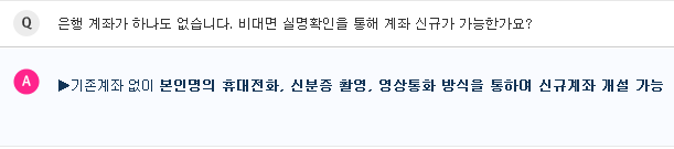 비대면으로 실명확인을 한후 , 본인 명의 휴대전화, 신분증 촬영, 영상통화 등의 방식을 통해서 신규계좌 개설이 가능합니다.